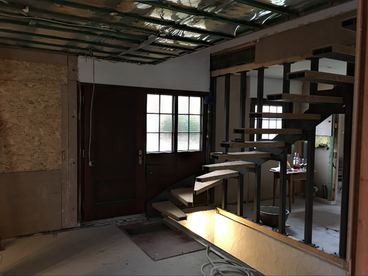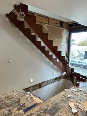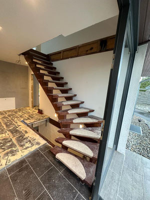In diesem Umbauprojekt haben wir in einem älteren Holzhaus eine moderne Kragarmtreppe integriert. Die freitragende Konstruktion wurde sorgfältig in die bestehende Bausubstanz eingepasst, sodass sich die Treppe harmonisch in den renovierten Wohnbereich einfügt.