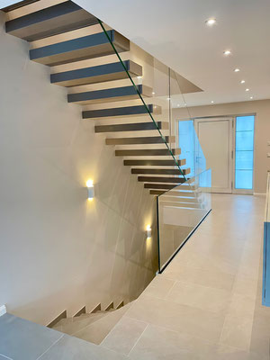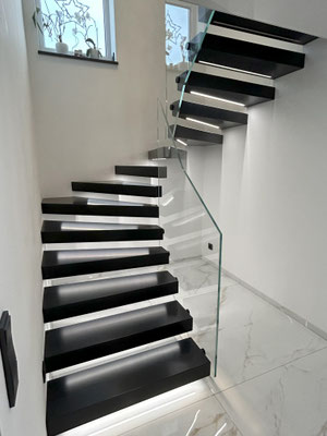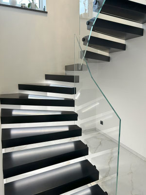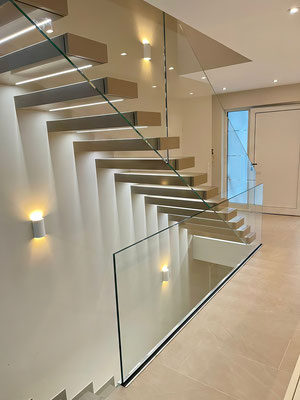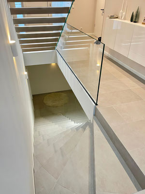 leicht Zerbrechliches denkt, irrt sich. Dieses Material kann in der entsprechenden Stärke, gestaltet werden und eine ganze Menge Fußtritten aushalten. Jede Stufengröße ist denkbar, denn die