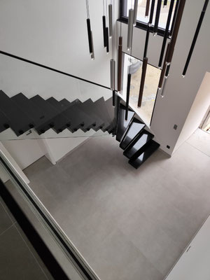 großen Platten lassen sich genau nach Kundenwunsch zuschneiden, so dass sich eine Treppe nach Bedürfnis und Maß ergibt.